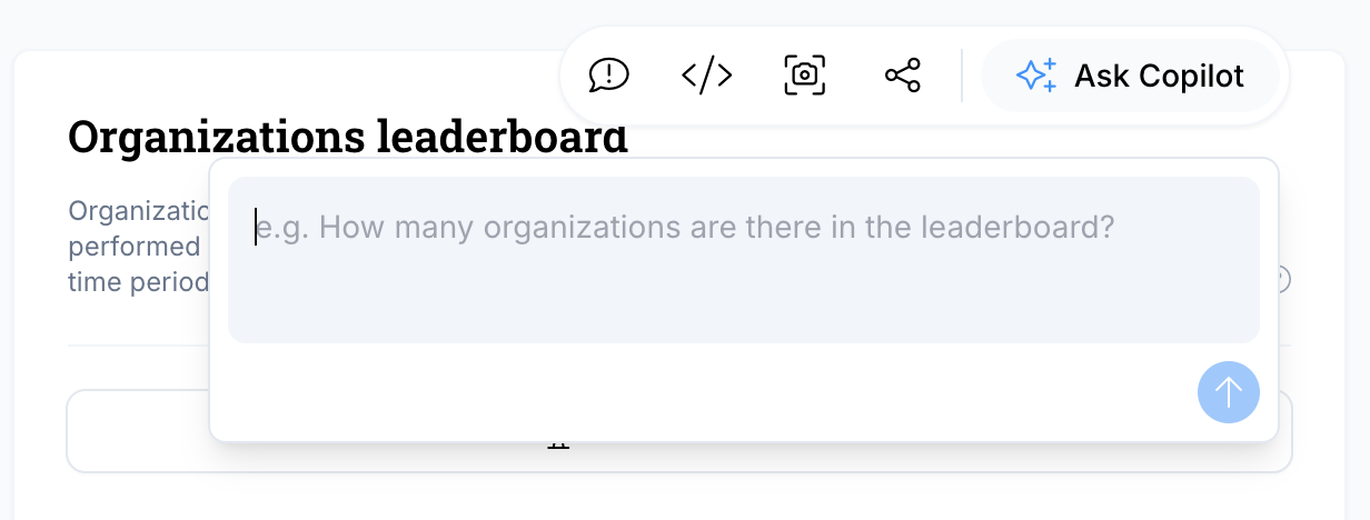 - Click "Ask Copilot" in the top right corner of the project page or on the action buttons of each widget.